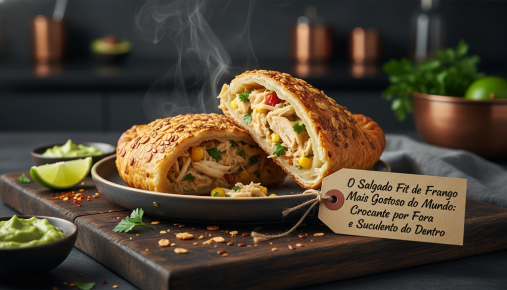 Descubra o segredo do salgado fit de frango perfeito: massa leve, recheio suculento e uma casquinha ultra crocante sem fritura. 3 receitas infalíveis com tabelas nutricionais!