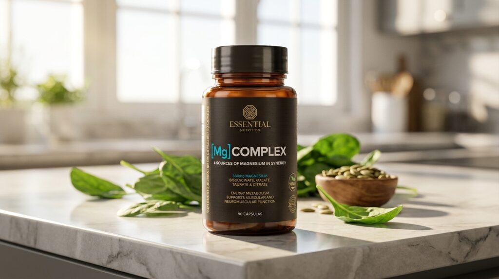 Descubra se o [Mg] Complex da Essential Nutrition funciona. Análise completa das 4 formas de magnésio, benefícios, bula, depoimentos e onde comprar mais barato.